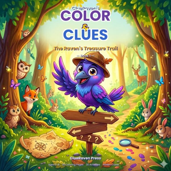 Ravi the Raven discovers a mysterious treasure map! Follow the clues through enchanted forests, hidden caves, and secret gardens. Color 30 beautiful scenes, find hidden map pieces on every page, and solve puzzles to help Ravi discover the treasure. The adventure starts here!